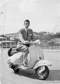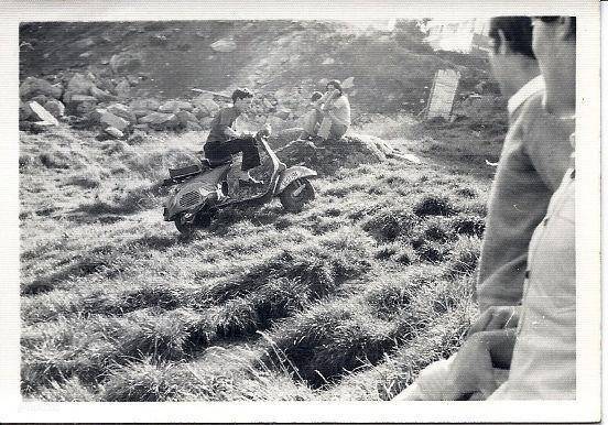 En los primeros años de matrimonio siempre hubo motos en casa de Cholo. Bultacos, montesas... aunque para ello tuviese que vender algunas vespas. Todas las que compraba eran usads, ya que las reparaba y restauraba poco a poco. Se dedica en aquella época a competir en motocross y trial, sus grandes pasiones además de la restauración de motos antiguas. SobCon la "crisis de los 40" vuelve al mundo escúter, sin haber dejado nuca de lado el mundo de las motos. Su primera compra fue una Vespa 125N con manillar de aluminio del año 1959 de cuatro marchas (C-17.214). A esta le sigue otra Vespa 125N de 1958 con manillar de tubo adquirida en Ferrol, el mismo modelo a la que su padre había traído de Montellano. Aquí lo vemos rodeado de amigos después de habérsele atragantado una ligera pendiente.