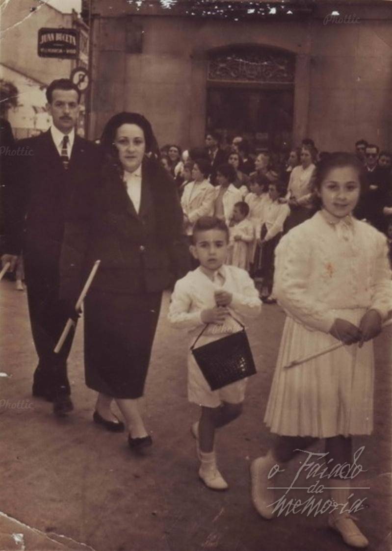 Salíamos a las nueve de la mañana, en fila dupla, comandados por Don Jesús, con Don Ramón vigilando al lado, siguiendo en procesión, que se extendía por una centena de metros, pasando por el Obelisco, enfrente al Cine Arosa, .hasta llegar a la iglesia Parroquial.
