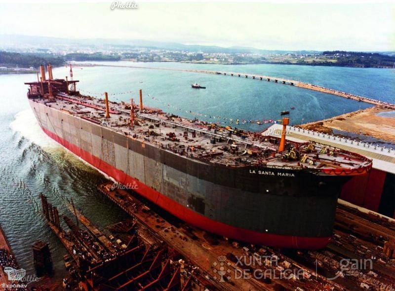 O buque entrando na agua durante o seu lanzamento, no Astillero Astano, S.A en Perlío.