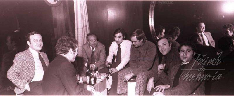 Aunque mucho tiempo despues del California, la Cafeteria Dorna marcó el camino a estos establecimientos en Villagarcía. Era un lugar agradable y bien instalado y centro de reunión de muchas pandillas. En la foto está Altés, del Rio y Abalo, entre otros. Cándido