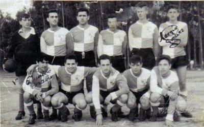 :Otra vez el portero desconocido,?,Tomás Miguéns,José María "carcetini",Barreiro,Sergio.Agachados por la izquierda:Cándido,el que le sigue puede ser Manolito Guerrero+,?,Casabella y Pepe "mano amarilla"(este último creo que es él,aunque es raro ya que jugaba de portero,seguramente que faltaría algún jugador).Un abrazo