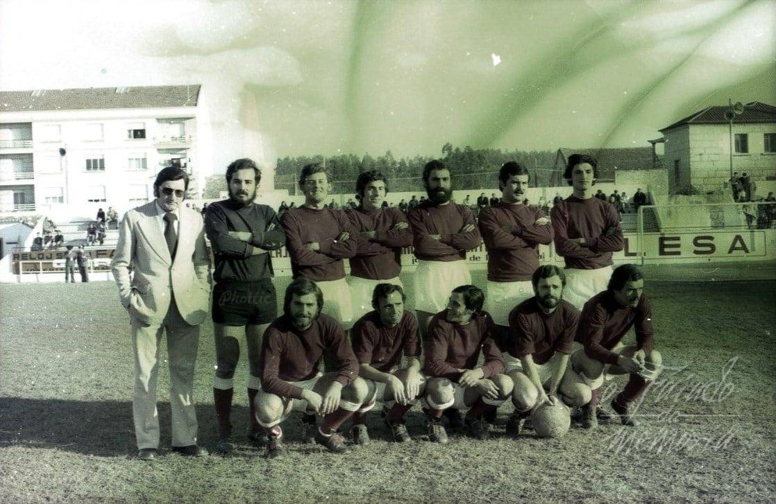 Comenzado pola esquerda (De pe) Fernando (entrenador), o portero vivia por Lantaño, os pais tiñan carnicería e creo que él estudiaba veterinaria, Exposito (creo), Pouquiño, Martin, Vidal, Suárez (DEP).