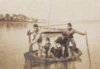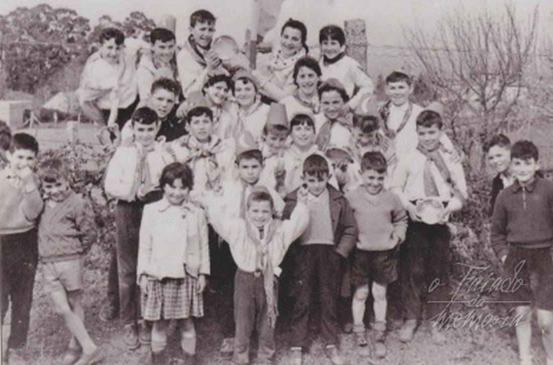 Esta foto pertenece a un grupo de niños/as que formaron una comparsa en Vilaxoán, con motivo de los carnavales, allá por los años 58/59 (no lo recuerdo bien). Los que estamos agrupados y con pañoleta al cuello somos los "cantantes". Mi hermano es el tercero de la segunda fila (empezando por la izquierda, según cómo se mire) con las manos enfundadas en el pantalón y yo soy la segunda de la segunda fila empezando por la arriba con Pitusa.