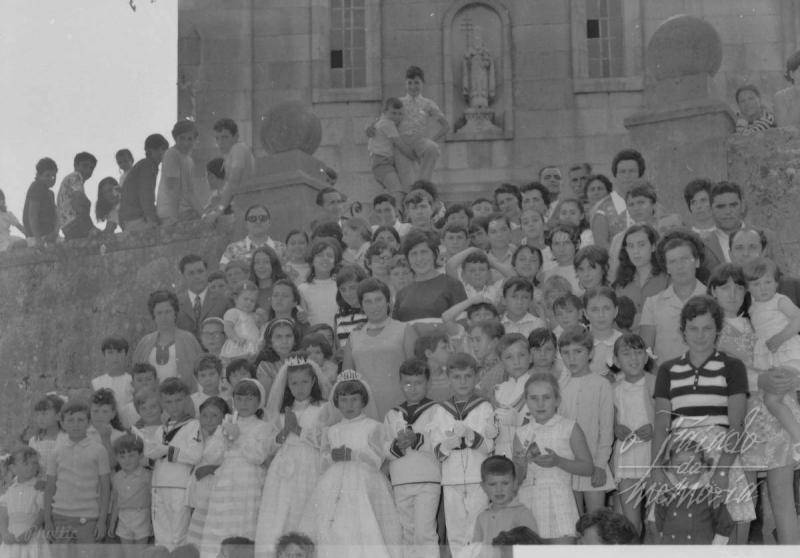 Primeiras comunions, posado nas escaleiras da igrexa de Cornazo, imaxen para lembrar