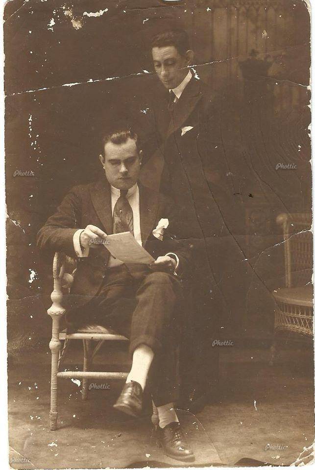 En la imagen los hermanos Ortega Palenque, Carlos (de pie) y Antonio. La fotografía pertenece al álbum familiar de Carlos Antonio Santana Ortega, nieto de Carlos. El retrato de los hermanos podría estar tomado en un estudio fotográfico de Camagüey (Cuba), hacia 1926.