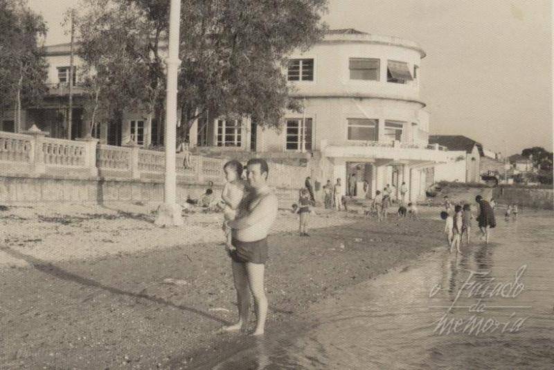 Seso Giraldez con un dos seus fillos na praia Compostela, donde ollamos un lustroso balneario
