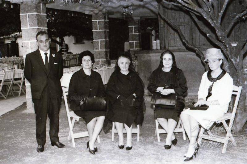 Casaba Maruxa e Antonio Alcalde, principios dos anos sesenta, no centro a madriña, nai do novio, Señora Esperanza, natural da Pobra do Caramiñal.