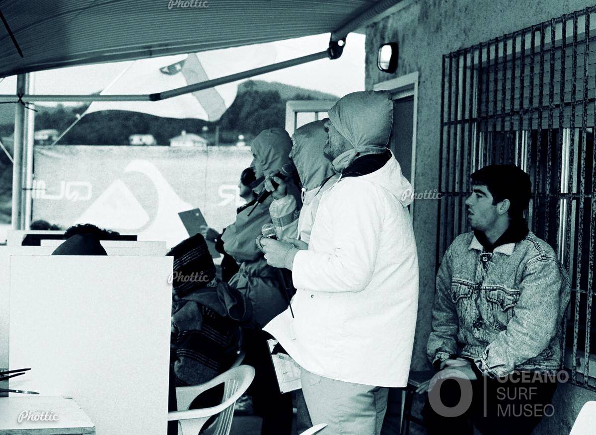 Leo Lujilde, Martin Rich y Vicente Irisarri han actuado desde los inicios del campeonato como comentaristas. Titular esta foto como "Cabina de speakers" sería un poco pretencioso pues ni había cabina ni medios. Sólo un toldo los resguardaba de las inclemencias del tiempo en la terraza del puesto de socorrismo.