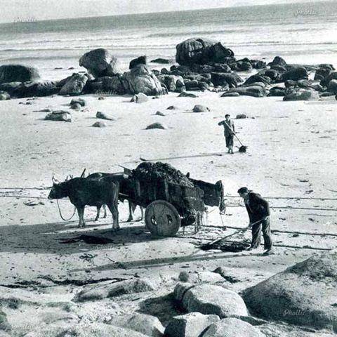 Recogiendo algas en la playa de A Lanzada, en Pontevedra, Galicia. Fotografía de Santi Chajo.