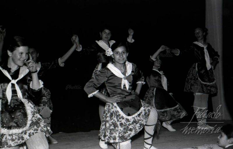 Maitane, Begoña Bravo, Maria do Carmen Leal, a irman de Carlos Rey, bueno a finais dos sesenta nun festival no colexio Filipense