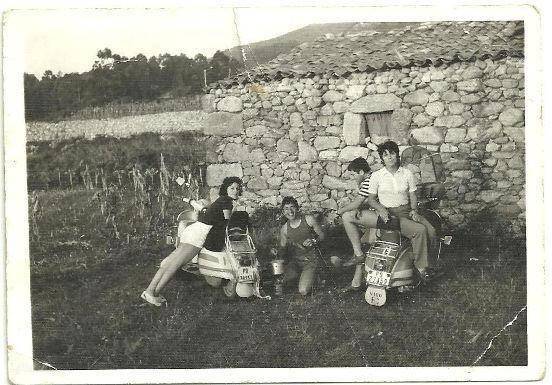 Cuenta Benedicto Méndez que... “por aquel entonces, meterse en un fin de semana 400 km de carretera era lo más normal. La foto la sacamos en Pedornes. Aquí estamos un amigo Alfonso y yo con nuestras chicas. No estábamos casados. Yo estaba haciendo algo en la cocinilla. Con él decíamos… ¿Nos vamos a Finisterre? Y nos íbamos para allá. Ir y venir de Finisterre eran esos 400 km que te comentaba. Era lo que había, por aquellas carreteritas sin asfaltar...”.