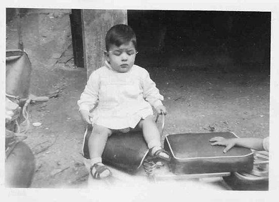 Alberto Alonso, en 1959 contaba con tan solo un año de edad. La foto está tomada en las inmediaciones de la casa familiar, ubicada en la Calle Cataluña, del popular berrio vigués de O Calvario. En la década de los 80, Alberto fue uno de los pilotos más competitivos y laureados del panorama gallego.