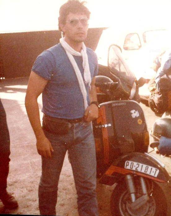 ”En Lisboa no creas que madrugamos para salir, nuevamente nos tomamos nuestro tiempo para conocer la ciudad, subir al castillo… sabiendo de antemano, que la etapa acabaría en el Cabo de San Vicente. Cuando ya estaba todo visto, nada más tomar el puente del 25 de Avril, a mi hermano se le gripa la vespa. Se bloquea la rueda, medio patinando, circulando bastante rápido, con el miedo metido en el cuerpo y con un camión detrás. La cosa se quedó en un agarrón y en esas, la rueda se volvió a desbloquear. Cuando salió de aquel trance, decidimos llamar a Manolo Vespa para preguntarle que hacíamos. Su respuesta fue: ya que estáis, seguir, pero echarle mucho aceite y durante un tiempo no pasar de 50 kilómetros por hora. No te exagero, pero recuerdo que le echamos una mezcla de más de un 5%”. Apuntar que Óscar, hizo todo el viaje en el asiento trasero de la vespa conducida por Xerardo Abraldes.