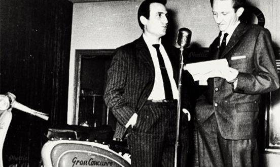 Esta fotografía en la que aparece un casi irreconocible Manolo Escobar haciendo entrega de una Lambretta en las instalaciones de Radio Vigo, la podemos contemplar en la web de ANCA. Desde su inauguración en 1959 en un céntrico local en la calle As Travesas, han sido muchas las marcas que esta tienda viguesa ha alojado en sus instalaciones: Montesa, Lambretta, Cucciolo, Ardilla, Mosquito, Elva, Ducati, DKW, MotoGuzzi, Terrot, Cyl, BH o Zeus, entre otras... todas ellas escriben con letras mayúsculas la andadura de una empresa apasionada por las dos ruedas, fundada por Ángel Carrera.