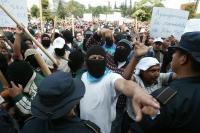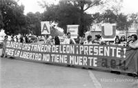 A lo largo de su historia, cientos de estudiantes y profesionales egresados de la Escuela Normal, por su entrega a los intereses populares, han sido encarcelados, torturados, desaparecidos y ejecutados, por fuerzas represivas al servicio de intereses hegemónicos. Fotografía de Rony Veliz, marcha normalista de protesta durante el sepelio del profesor Antonio Urizar.