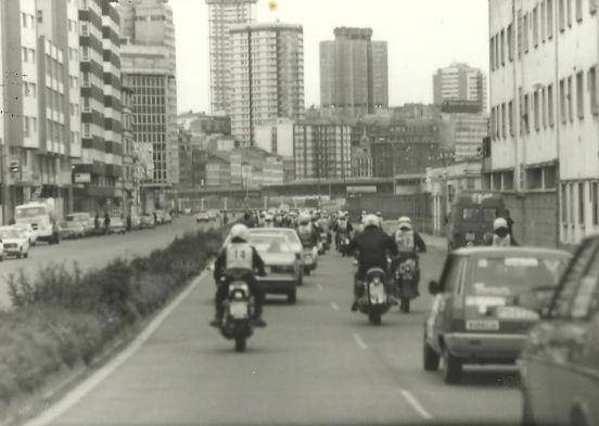 Año 1981. Volta motociclista a Galicia. Entrada en la ciudad de A Coruña.