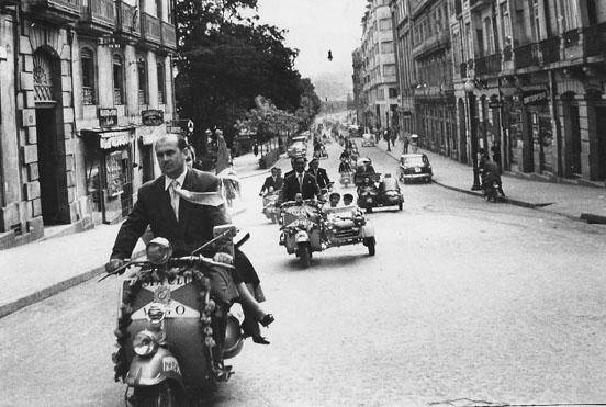 Finalizado el retrato de estudio, la comitiva vespista se dirigió hasta el Hotel Universal, causando durante todo el recorrido una gran admiración entre los viandantes. Durante el recorrido, fueron varias las veces en las que se tuvieron que detener debido a que la gente les pedía insistentemente que parasen. “Algunos, -nos comenta el Sr. Moreira- bajaban en pijama, con una cámara y nos hacían fotos” “Otros, al escuchar las sintonías que entonaban OS MORENOS con sus gaitas, pedían a los gaiteiros que tocasen determinadas piezas”.
