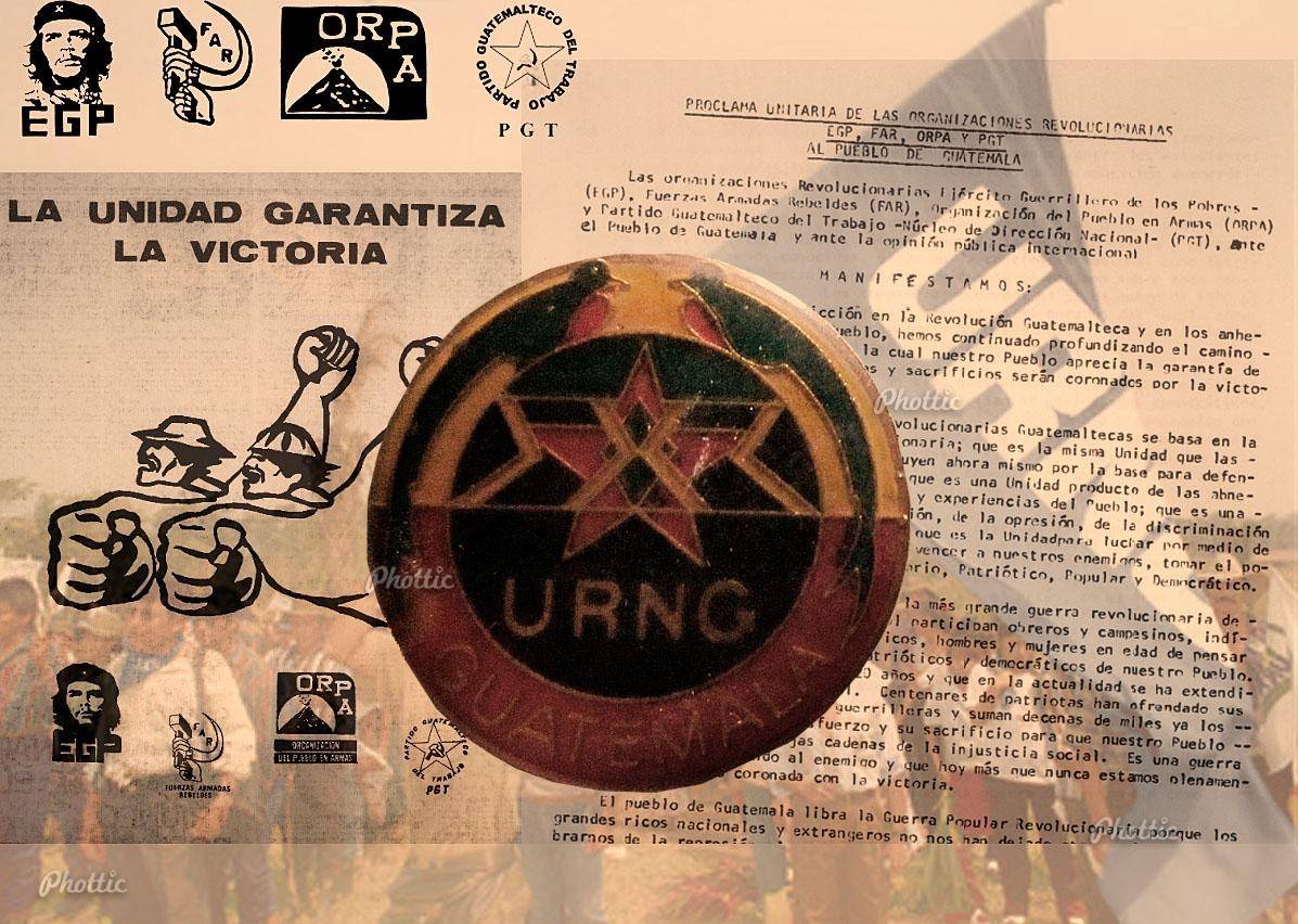 El 7 de febrero de 1982 se funda la Unidad Revolucionaria Nacional Guatemalteca, alianza estratégica de las organizaciones insurgentes Partido Guatemalteco del Trabajo, Fuerzas Armadas Rebeldes, Ejército Guerrillero de los Pobres y Organización del Pueblo en Armas. Con el propósito de coordinar acciones para el impulso de la guerra popular revolucionaria en Guatemala, para tomar el poder e instaurar un gobierno popular y democrático. Tras la firma de los Acuerdos de Paz, la URNG se convirtió en partido político, legalizado como tal el 18 de diciembre de 1998.