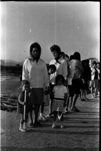 A nena do medio é Alicia Presas Valladares, pola rua Edelmiro Trillo en procesion vestida de primeira comunion.