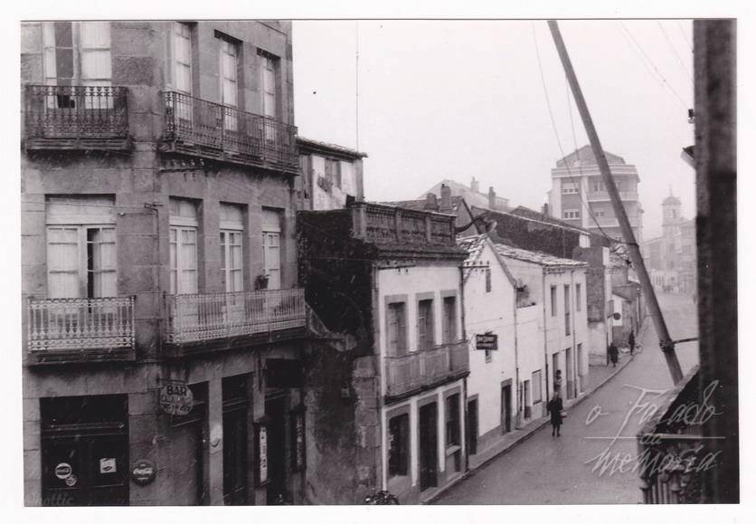 Rua .Rey Daviña..En priméiro termo, a casa onde estivo o" bar Paco", i a seguir, O "bar Dervy"...Nin que dicir ten que os dias de maior afluencia de público nestes bares eran cando habia baile na bolera Rosalia Castro, que estaba a carón deles...Dende logo que paz i que sosiego se respiraba nesas ruas, nas que o tráfico era mínimo..Xaa...xa.. sei que o mundo ten que tirar pra diante....Nembargantes, lembrar é vivir.. I eso,-lembrar- non hai quen no-lo quite .Saudos de Roberto Ocaña
