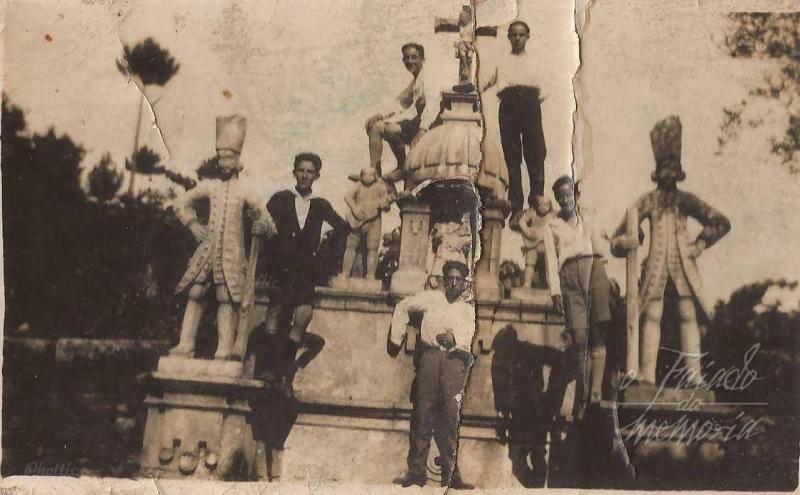 A escultura que sirve de fonte a beira da igrexa de Cea é un dos simbolos da resistencia dos veciños a invasion francesa. En canto a fotografia descoñecemos a xente que figura nin a data
