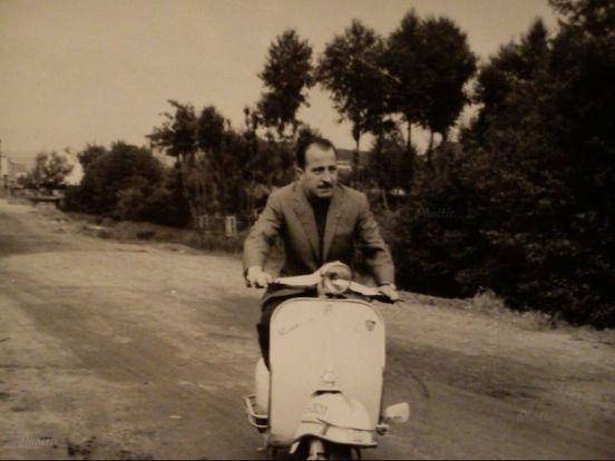 Padre de José Ignacio López Veiga, en esta fotografía de 1967 aparece retratado D. Manuel López Illanes. Manuel se encuentra circulando en su vespa por Monforte de Lemos, en la zona conocida como Rioseco, cerca de la estación del Ferrocarril.