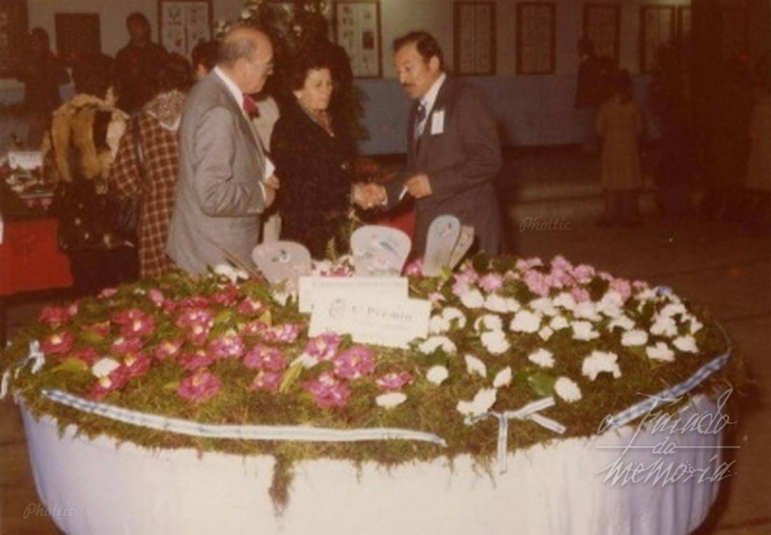 La persona que está a la izquierda de la fotografia, es D.Antonio Odriozola Prietas,gran investigador de la Misión Biologica de Pontevedra y una de las maximas autoridades mundiales en el cultivo de camelias,siendo el, el que tuvo la idea de la celebración de esta fiesta en las tres localidades mas importantes de la provincia.Siempre con una camelia en el ojál de su chaqueta, tal como se puede apreciar en la foto.