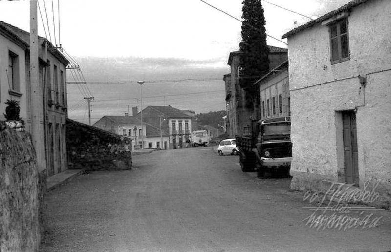 A dereita xunto o camion estan as escaleiras que dirixen a igrexa do pobo, tras o cipres o pazo mercado no seu dia por Miguel Padin