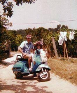 Al principio no eran precisamente Vespas las motos que él arreglaba. Es más, afirma que bien poco le gustaba repararlas. El estaba acostumbrado a trabajar con motos más modernas tipo las Gilera. Despojado del mono, aunque ayudando a los padres en las faenas del campo, aquí lo vemos posando en 1981 junto a sus hermanos pequeños medio disfrazados.