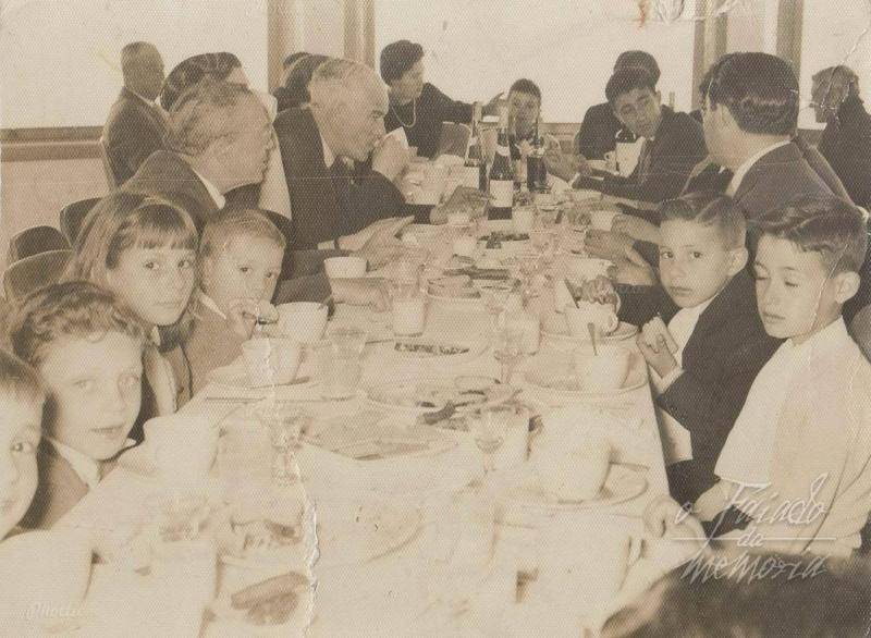 No Balneario, ano 1957, vemos a esquerda a Jesus Garrido, e os nenos de Santa Lucia, Marisa e Carlos Cuevas, Paco Prieto e frente Felipe Teijeiro