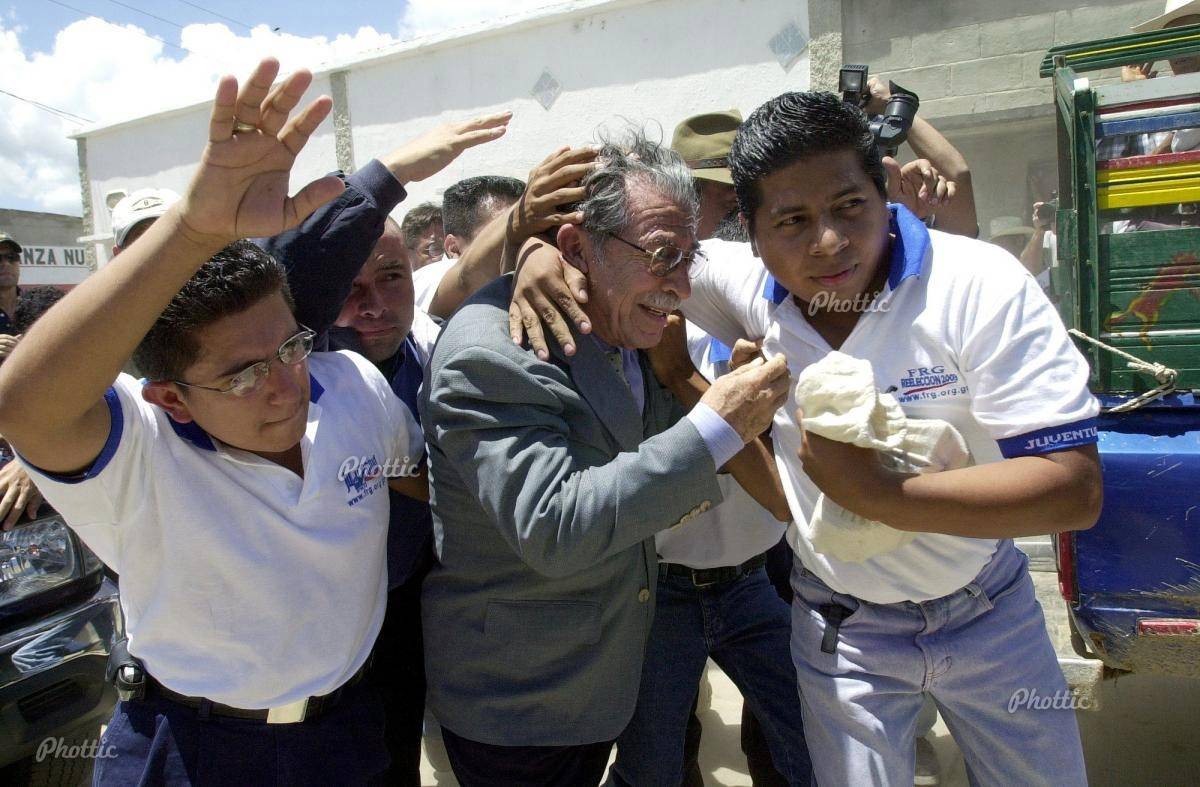 El 14 de junio de 2003 el general genocida Efraín Ríos Montt, candidato presidencial del oficialismo, llegó a Rabinal con el propósito de realizar una concentración política. Este municipio fue uno de los más afectados por las políticas criminales implementadas por el Estado de Guatemala. La noche anterior a su llegada, familiares de personas masacradas por el Ejército Nacional, habían velado los restos de algunas víctimas, los cuales inhumarían a día siguiente.