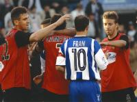 Beci (centro) celebra o gol que acaba de marcar ante o Rayo Vallecano ante a alegría de Loureda (esquedar) e Juanito (11) e a desolación de Aráez (dereita), o 6 de xuño de 1971 no estadio de Riazor, no partido da 38ª e última xornada do Campionato de Segunda División da Temporada 1970-1971. O Deportivo venceu ao equipo madrileño con ese solitario tanto e logrou o ascenso a Primeira División.