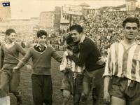 Joanet atrapa o esférico ante Gabriel Lezcano, nun lance do encontro da 28ª xornada do Campionato de Primeira División da Temporada 1969-1970, disputado o 5 de abril de 1970 no Estadio de Riazor. O Celta venceu ao Deportivo por 0-1. O recinto presentaba unha pequena bancada provisional no fondo do Pavillón dos Deportes.