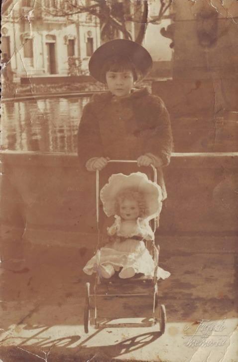 Muy linda Margarita y muy elegante, con su preciosa muñeca. Las llamábamos vestida "de dama antigua".