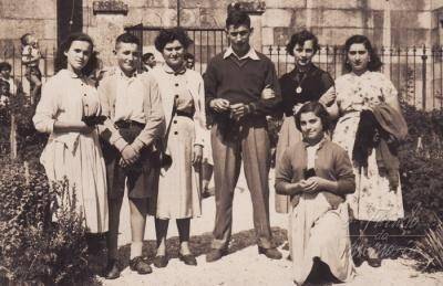 Entrada do cementerio de Cornazo. De esquerda a dereita Xosé ( o Cuervo), Nieves Veiga, Luis Cuervo ,Xefa a de Jaime , Elisa a Pexa , e Milucha