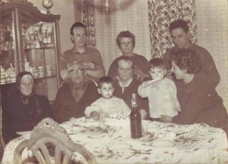 En la fotografia está sentado Salustiano y su señora, detrás Manolo y su madre y a la derecha Ramón Porto Irago, que tambien tuvo ultramarinos en el mismo bajo, con su señora, hermana de Manolo. Los niños son de este matrimonio y supongo que uno de ellos será Josito Porto que trabajó en la serie Platos Combinados de la TVG.