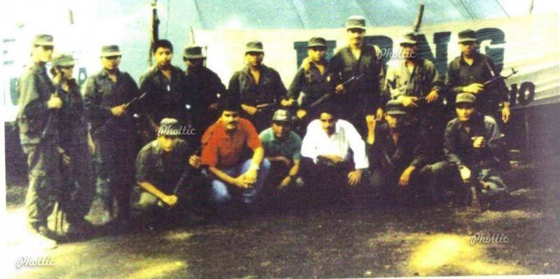 Combatientes del Partido Guatemalteco del Trabajo. Fotografía publicada en La Guerra en Guatemala imágenes y testimonios desde la perspectiva rebelde.
