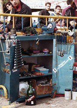 En esta otra fotografía, vemos un primer plano del armario de herramientas que Manolo Vespa llevó a las 6 horas de resistencia de Montjuic.