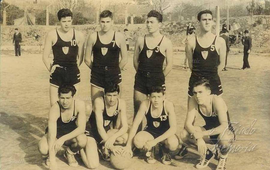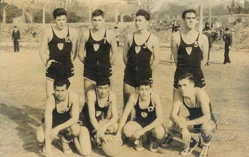 Diante do vello Instituto se xogaban partidos de baloncesto, era un dos espacios que utilizaba o Liceo cando estaba en Edelmiro Trillo. Na foto entre outros Gonzalo Perez,, Rogelio Presas, Piferrer,Fandiño e Joaquin Martinez que fai moitisimos anos emigrou a Latinoamerica, deportista moi completo, destacaba en natacion