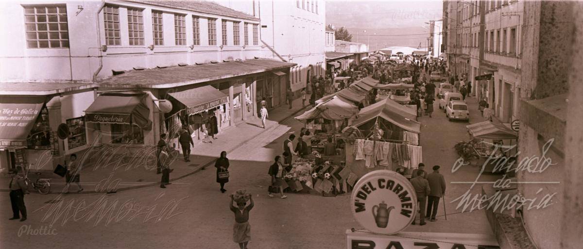 A esquerda na actualidade e unha drogueria de Jose Luis Dominguez fillo de Joaquin o do Veloz e Maria a sua muller filla de Laguero. Na foto era unha paqueteria que rexentaba Loreto Carballido de Trabanca Badiña, e a que creemos ver na imaxen de pe por fora do puesto.