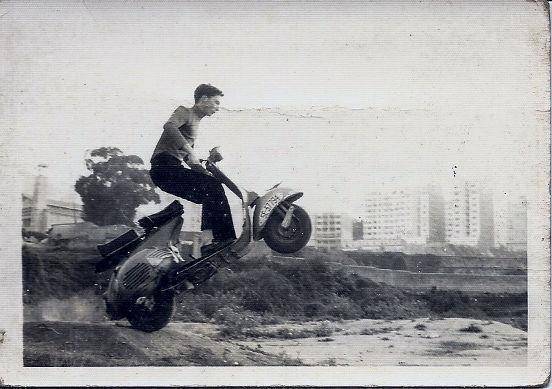 En numerosas ocasiones antes de alcanzar la mayoría de edad y por lo tanto sin el permiso de conducir, Cholo aprovecha las largas ausencias tanto del padre (por sus viajes), como por el trabajo de la madre, para darse unos paseos con “la sevillana”. Uno de aquellos inolvidables paseos queda reflejado en las fotos que acompañan a esta entrada, realizadas por su amigo y compañero de estudios Carlos González Garrido, por el monte de Santa Margarita y el Paseo de Los Puentes, ambos cercanos al domicilio familiar.