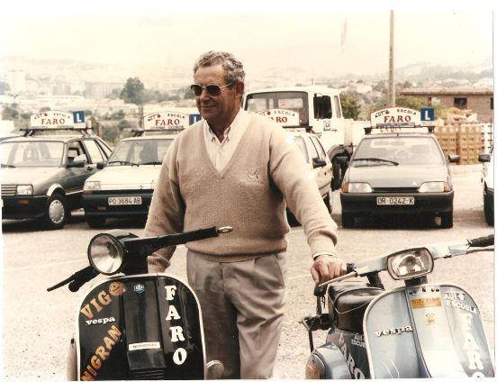 Autoescuela Faro, con centros de enseñanza en Vigo y Nigrán, nos hace llegar esta fotografía correspondiente a parte de la flota automovilística del centro, con sus inconfundibles vespas debidamente rotuladas. A día de hoy, se pueden algunas de ellas circulando por O Val Miñor en manos de particulares.