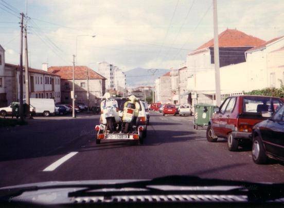 Las Vespas de Diego de MOTO SINIESTRO y "Pisco", bajando la calle Tomás Paredes en dirección hacia el poco técnico circuito de Bouzas. A pesar de la climatología desfavorable, la prueba congregó a un gran número de aficionados. A todas luces, un público fiel y ávido de emociones fuertes.