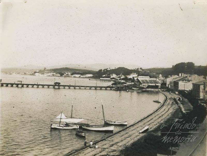 Asi era Vilagarcia no ano 1910, a sua fachada maritima en forma de concha,o mar, incomparable, sin recheos, facia dous anos que se construira o peirao do Ramal ca via do tren.