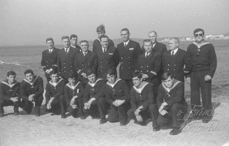 Bueno de aquela para sacar unha fotografia se movian uns metros na vella Comandancia e xa tiñan vistas a ria, vemos os mariñeiros cos oficiales e o Comandante