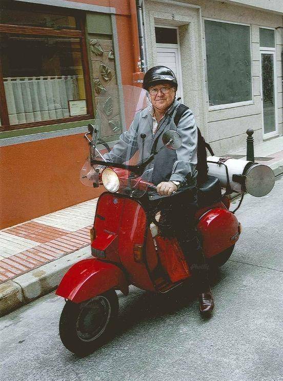 Al poco tiempo (1965) me compré en Motos Galán, distribuidor oficial de Lambretta en aquella época, una Scooter línea LI 125 (C-36909) que me costó 20.000 pesetas, descontadas ya las 1000 en que valoraron la Lanch que les entregaba. En 1991 siguiendo las indicaciones de mi mecánico habitual, que me recomienda la compra de una Vespa 200 Iris, cuyo precio fue de 250.000 pesetas en Motos Botana, aunque yo seguía confiando plenamente en mi Lambretta. Decir que siempre las he usado para mis trabajos, recados, compras y para ir a la playa en verano con mi mujer Digna. Nunca participaba en actividades de grupo ni en salidas organizadas, que tanto había en aquellas épocas, siempre fui un espíritu libre. Hoy en día, a mis 82 años, en contra de la opinión de toda la familia, sigo conduciendo mis viejas Vespa y Lambretta, con las que recorría la ciudad cobrando recibos del OAR Ciudad y de Acción Católica, así como del establecimiento Docampo.