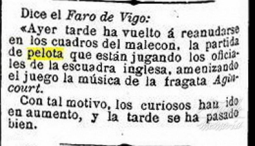 O que repase as hemerotecas sabe que e asi. Onte entrou un ciudadano con nombre Macabit no blog e reivindicou para Huelva os inicios do futbol en España. Os do Faiado temos unha chea de dudas. Podemos demostrar que os ingleses xogaban a pelota nas ruas de Vilagarcia, de Vigo, de Coruña, de Ferrol e de Marin. O que pasa que a Escuadra en Vilagarcia, en ocasions botaba meses atracada na ria, nos chaman..."Os Ingleses"