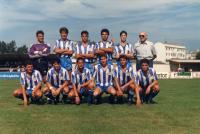 Joanet atrapa o esférico ante Gabriel Lezcano, nun lance do encontro da 28ª xornada do Campionato de Primeira División da Temporada 1969-1970, disputado o 5 de abril de 1970 no Estadio de Riazor. O Celta venceu ao Deportivo por 0-1. O recinto presentaba unha pequena bancada provisional no fondo do Pavillón dos Deportes.