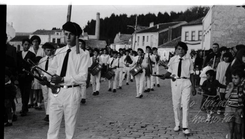 Es la banda de cornetas y tambores de Sobradelo, a la derecha de la foto entre el público se ve a D. Vicente y los que tocaban entre otros están: Gelo, Castiñeiras, Mingos, Alfonso etc. Un saludo Kiko