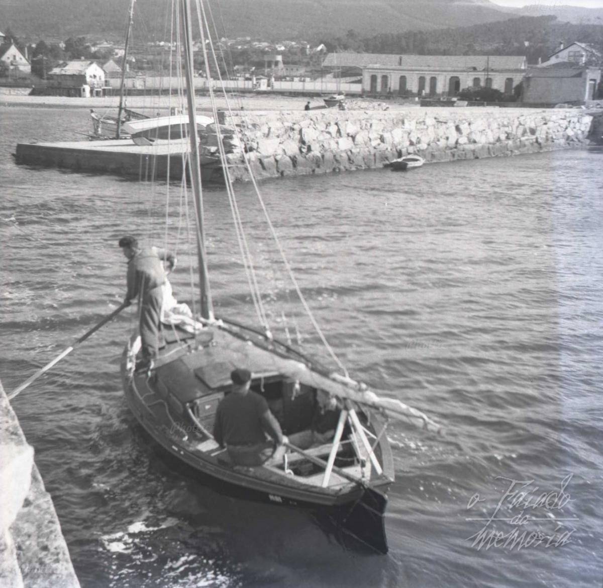 Enfrente as casas que lembramos, a fabrica Celtica, propiedade dos irmans Garcia Reboredo, ainda en pé o Balneario, enfrente a casa da familia Martinez Guimil. Facendo maniobras a dorna Nai